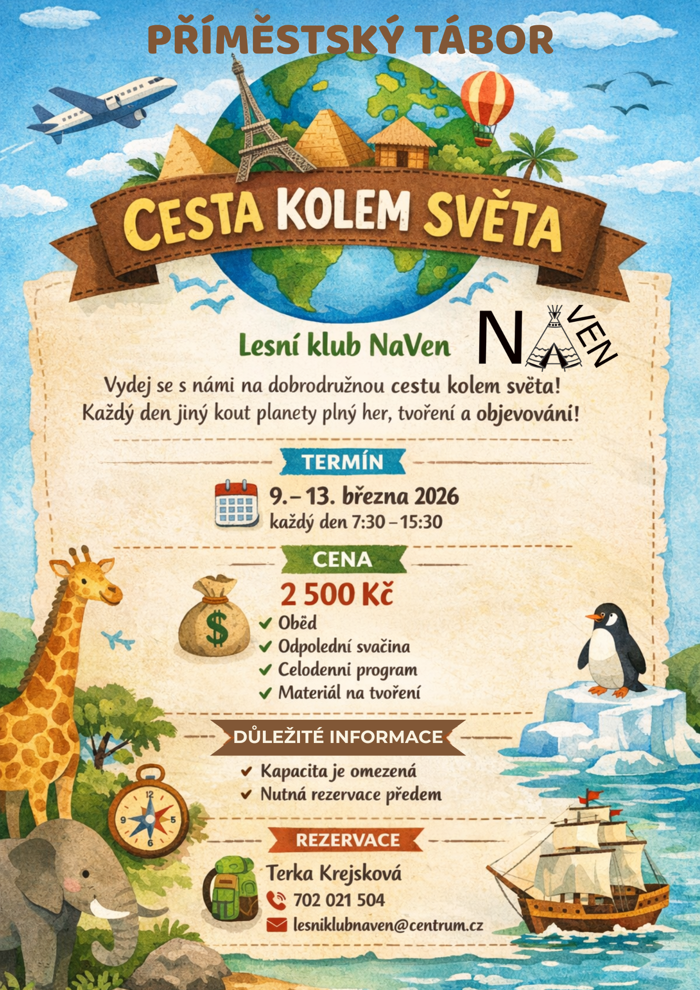Takže hopsá hejsa každýmu, komu se chce – ať je to malý cestovatel nebo větší dobrodruh, tábor je otevřený všem našim NaVeňáckým dětem, které mají chuť zažít týden plný radosti, pohybu a poznávání. Těšíme se na vás!